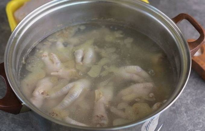 - variť na miernom ohni 2–3 hodiny, kým nožičky úplne nepustia chuť;