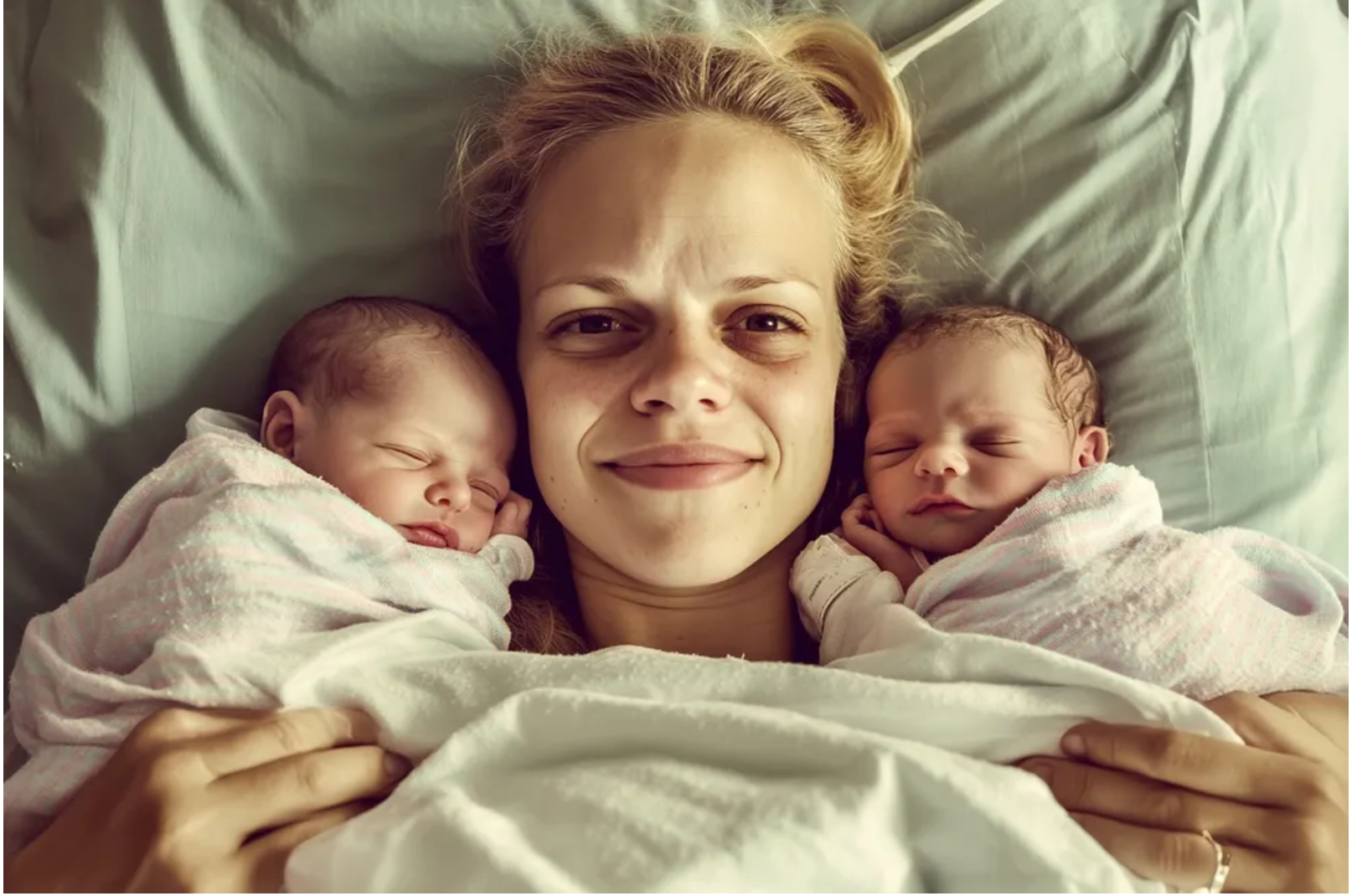 Ležala som na sterilnej bielej nemocničnej posteli, moje srdce bolo plné, hoci telo ma bolelo. Bola som vyčerpaná, ale stálo to za to, aby som sa mohla pozerať na krásne dvojčatá, ktoré sa pritúlili k môjmu boku.