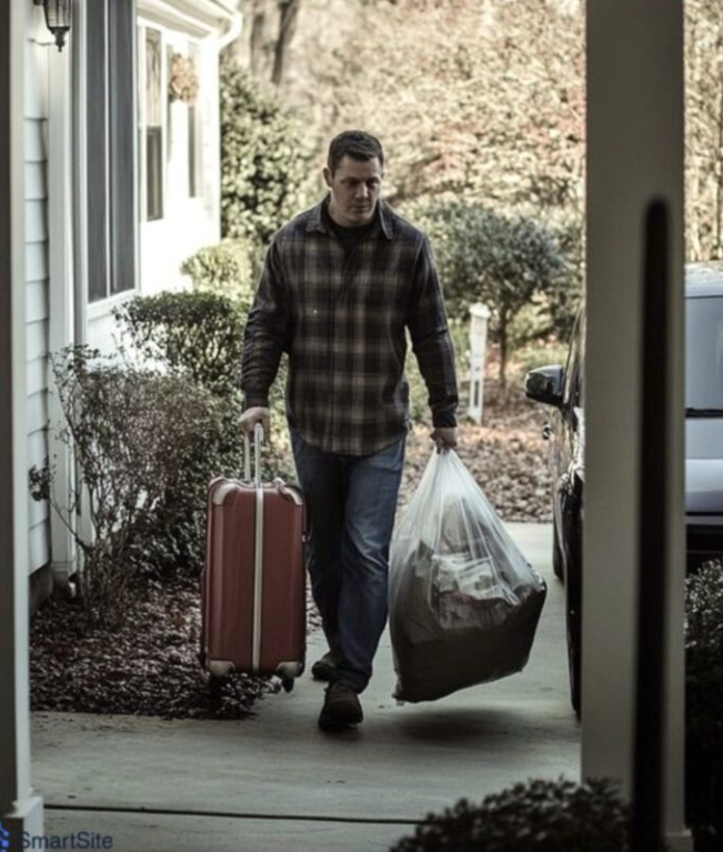 Bol u svojho otca, jej bývalého manžela, ktorý na poslednú chvíľu odmietol letieť späť s ním a poslal ho samotného lietadlom.