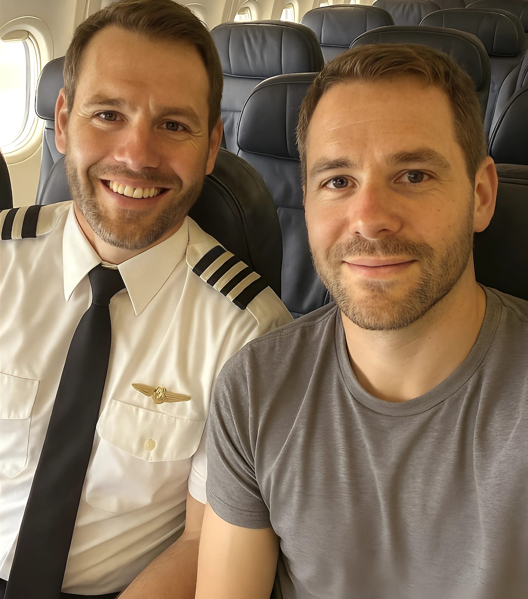 Predtým, než vystúpi z lietadla, pilot si všimne posledného pasažiera, ktorý je jeho kópiou.