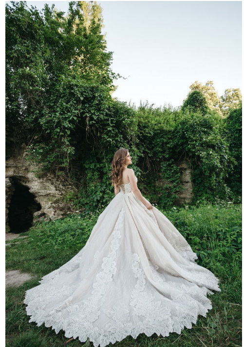 Pred pár dňami som ho videla takmer hotové. Atlas v slonovinovej farbe, jemná čipka, dlhá vlajúca vlečka.