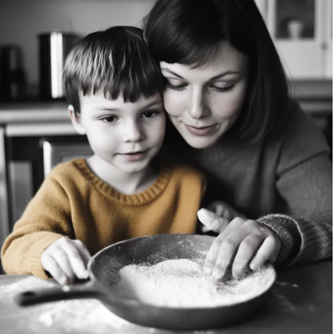 Múka pokrývala podlahu a dokonca aj špičku Joeyho nosa. Zachichotal sa, keď zatlieskal rukami, čím zdvihol oblak múky do vzduchu a sledoval, ako sa točí ako snehová búrka.