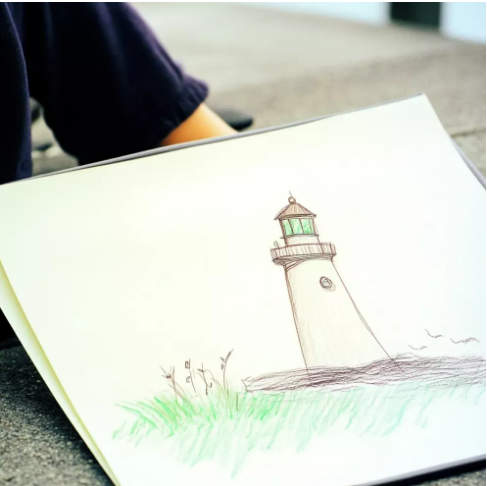 Rozložila som papier. Bol to jednoduchý obrázok. Maják.
